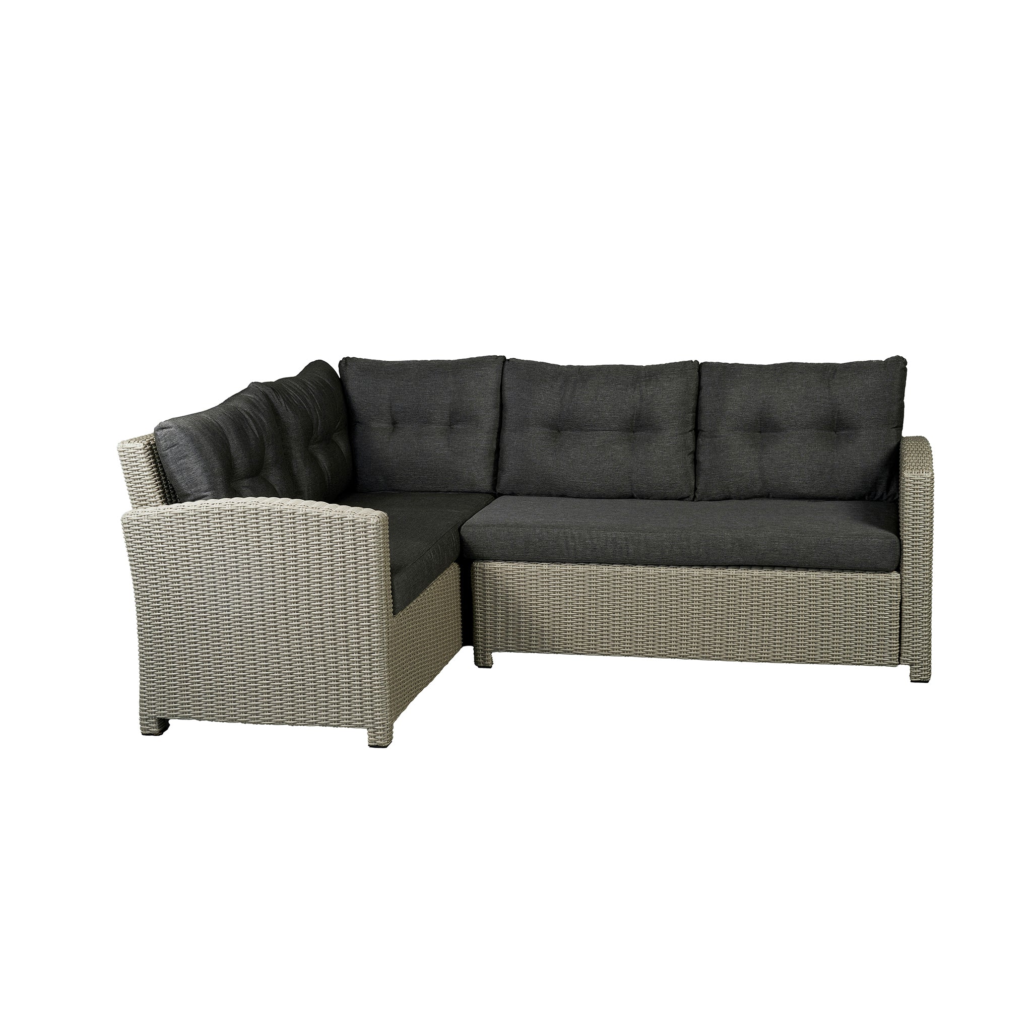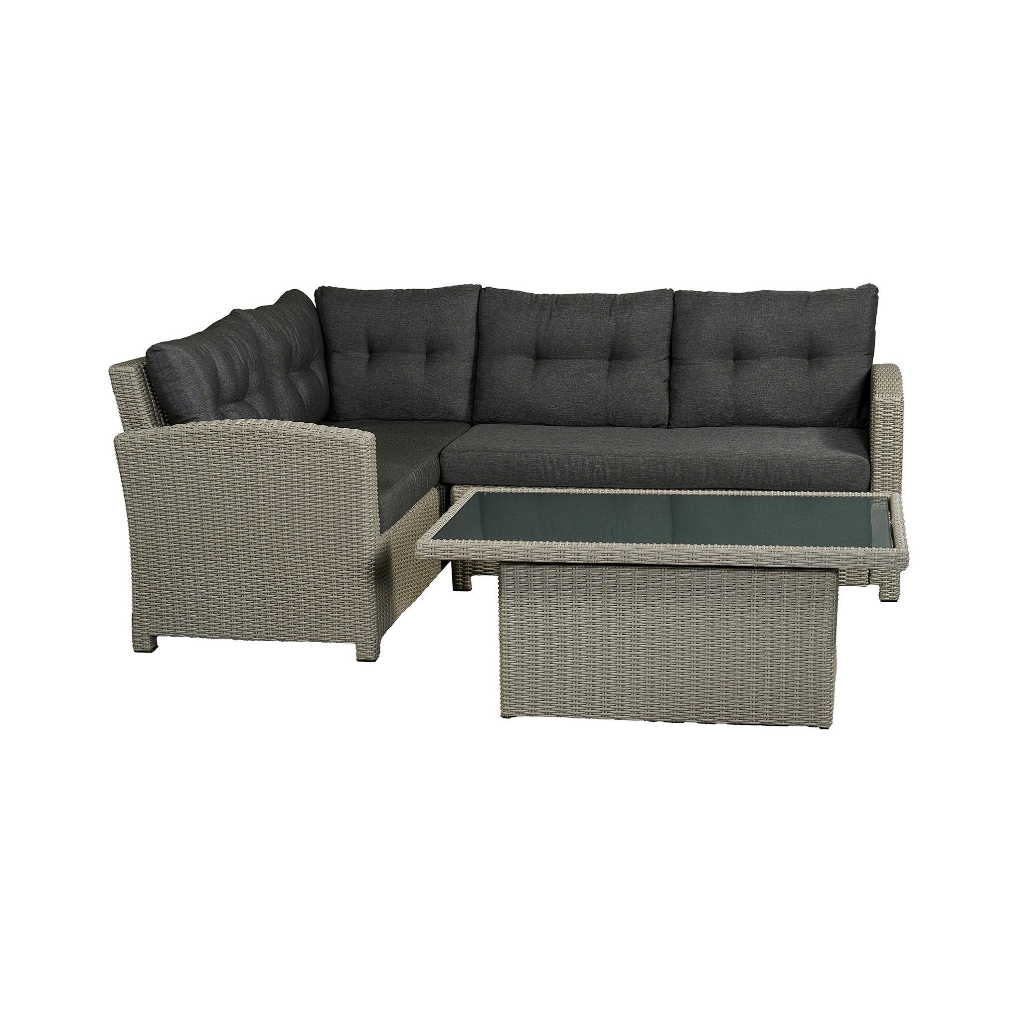 This compact and space-saving, modular garden corner sofa set offers versatile seating options, whether for a small gathering or the entire family.