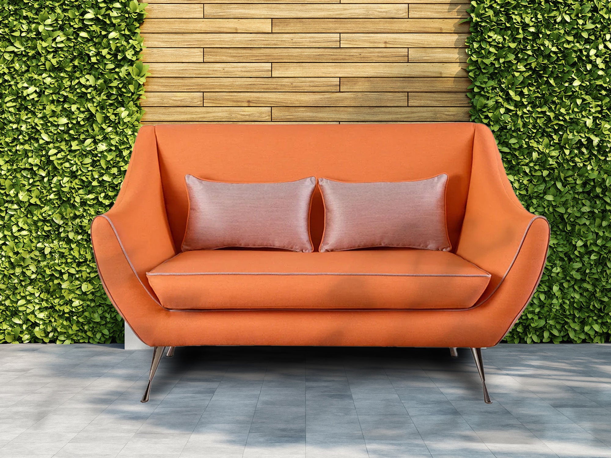 Wir präsentieren Rita, unsere farbenfrohe und vielseitige wasserdichte Outdoor-Sofaserie, die Ihren Außenbereich verschönert. Diese leuchtend orangefarbenen Sofas vereinen Funktionalität und Stil und bieten bequem Platz für 2 bis 3 Personen. Sie sind langlebig, wetterfest und wasserdicht. Das schlanke Design und die leuchtenden Farben der Rita-Serie verleihen jedem Außenbereich eine angenehme Atmosphäre, während die großzügigen Kissen stundenlangen Komfort garantieren.